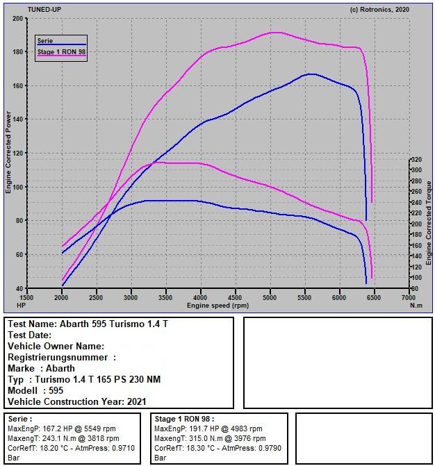 Dieser Abarth bekam einen Stage 1 Abstimmung auf Super Plus Benzin.