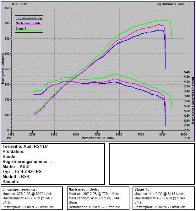 nach mechanische Bedireinigung: 397 PS / 410 NM