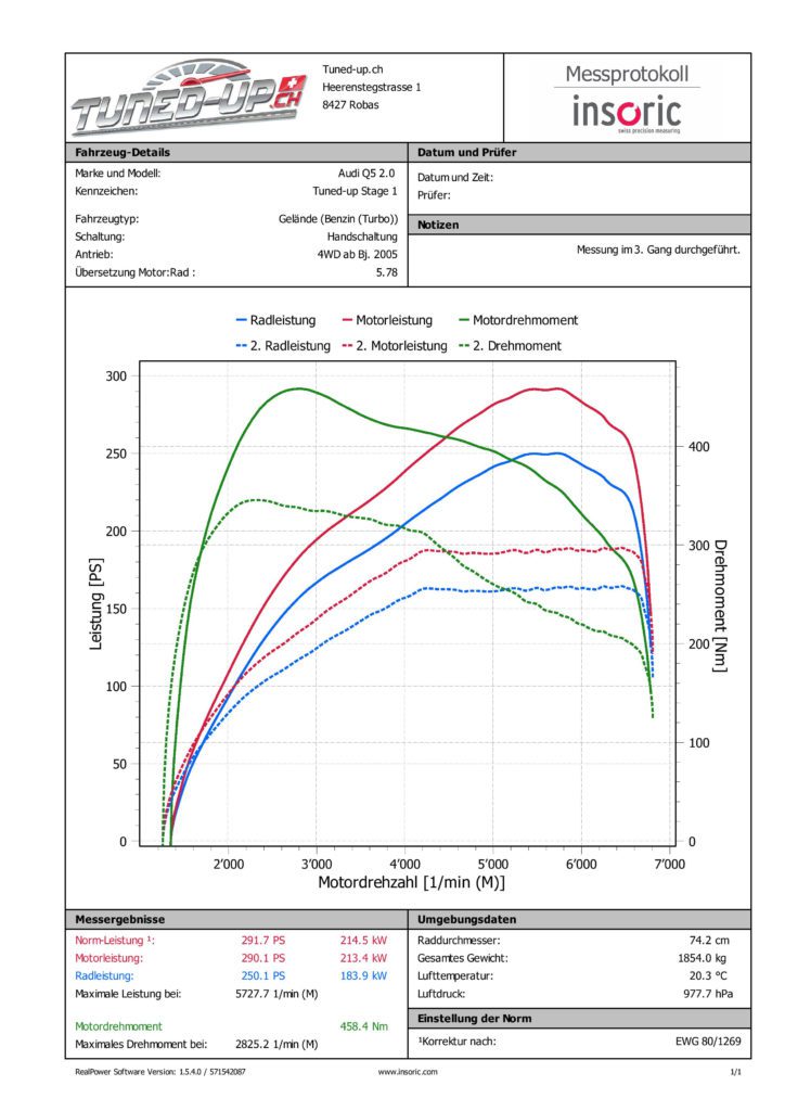 Die Leistungsmessung wurde mit Insoric Sales GmbH & Co. KG durchgeführt. Zur Fahrzeuggewichtsermittlung vertrauen wir auf Cartesy GmbΗ Radlastwaagen.